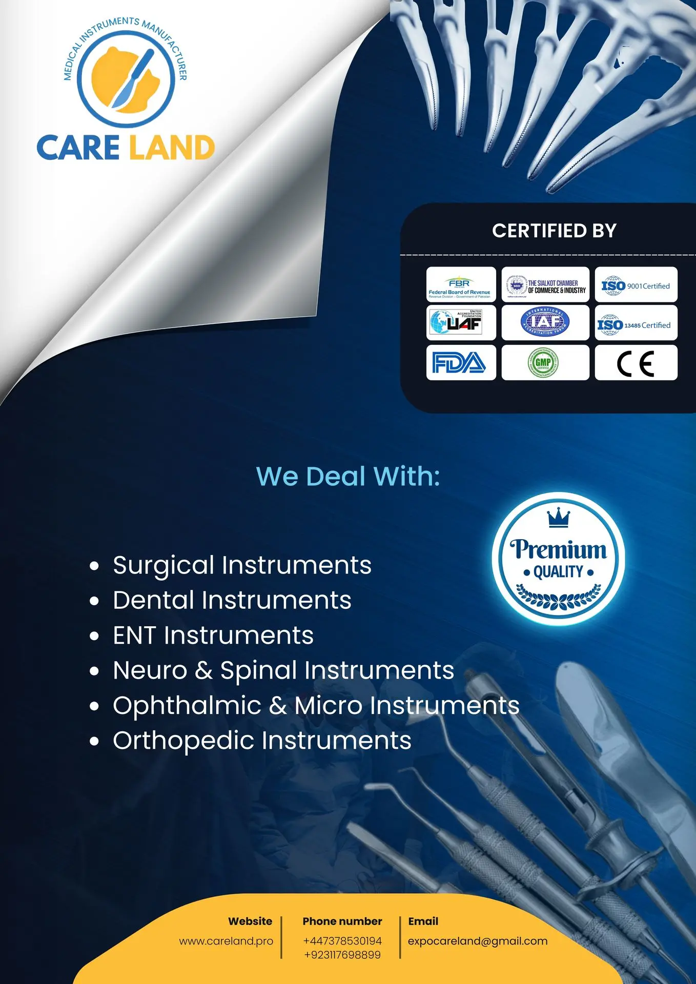 At Careland, we specialize in the design, manufacturing, and global distribution of superior-quality surgical instruments, orthopedic Instruments, and dental tools. With a focus on innovation, durability, and precision, our products are trusted by surgeons, dentists, and medical professionals around the world.