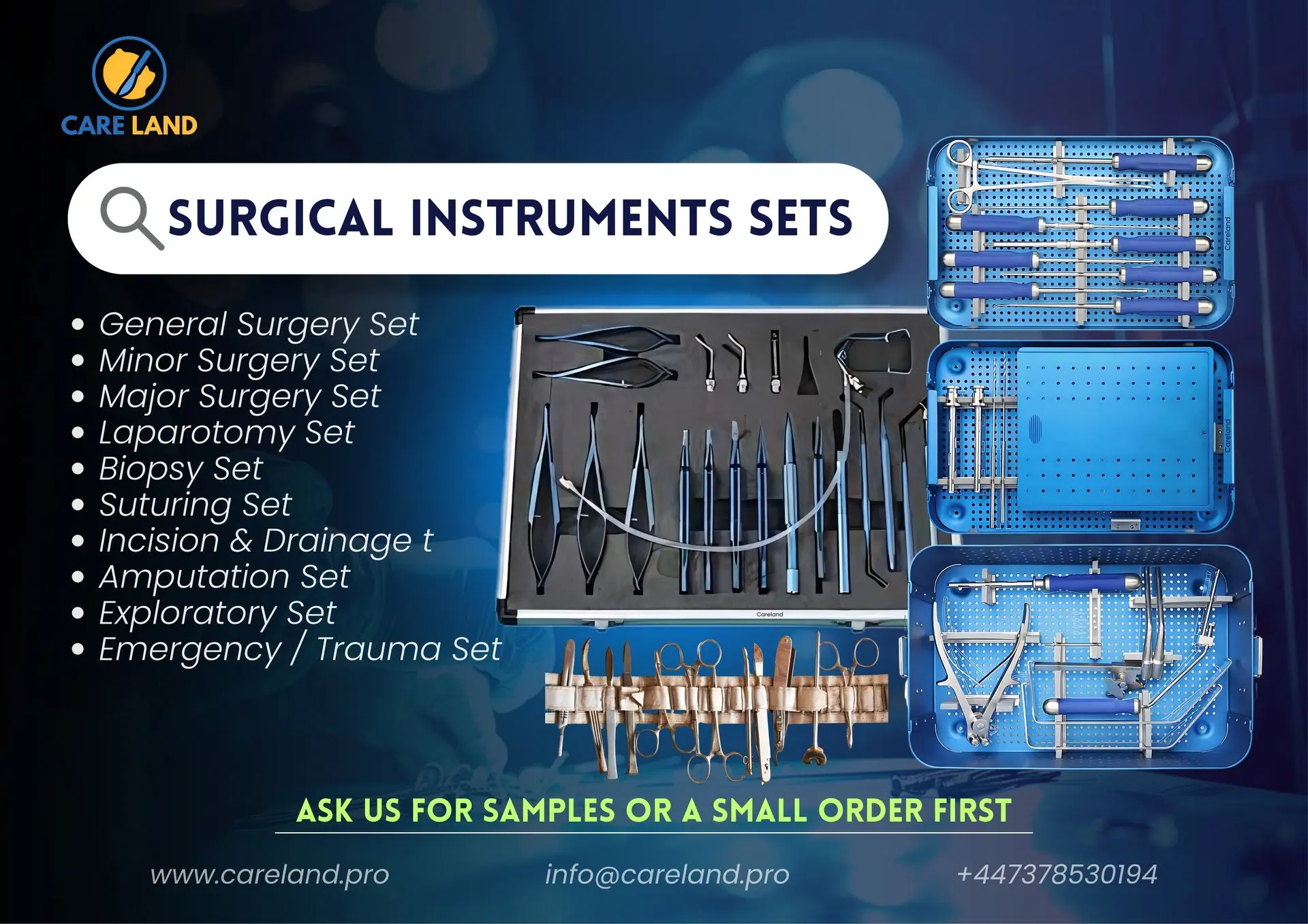 At Careland, we specialize in the design, manufacturing, and global distribution of superior-quality surgical instruments, orthopedic Instruments, and dental tools. With a focus on innovation, durability, and precision, our products are trusted by surgeons, dentists, and medical professionals around the world.